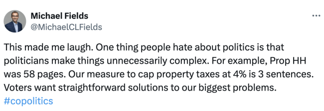 Local Republican talking point muppet Michael Fields recently appeared on Fox 31’s political show to make this dumbass argument: