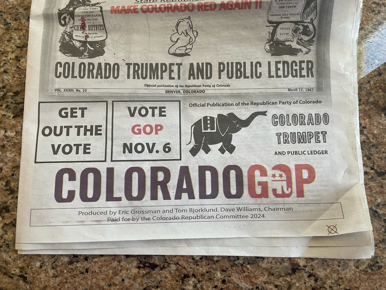 Upon closer examination you can see that part of the above page appears to be reprinted from a 1967 Colorado Republican Party newsletter, which led to some excuse-making by party faithful: