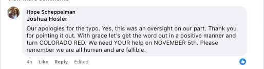 All of which led to this confession and mea culpa today from Colorado GOP vice-chair Hope Scheppelman, admitting this was very much a 2024 mistake, and asking for something Hope calls “grace.”