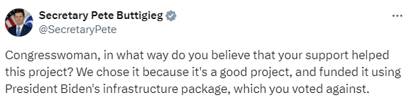 Shortly afterward, U.S. Transportation Secretary Pete Buttigieg and the White House’s official social media account joined in the dunkfest: