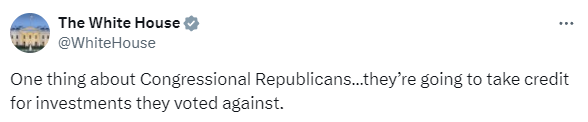 Boebert’s claim when pressed about the glaring contradiction is that she “supported” the specific projects in backroom discussions even though she voted against the bill containing them. But every time this has happened, by the end of a round of thoroughly negative press it’s been clear that nobody buys this convoluted excuse-making. The job of Members of Congress is to vote on legislation, and if you vote against legislation you cannot take credit after the fact for the benefits that legislation brings to your district.