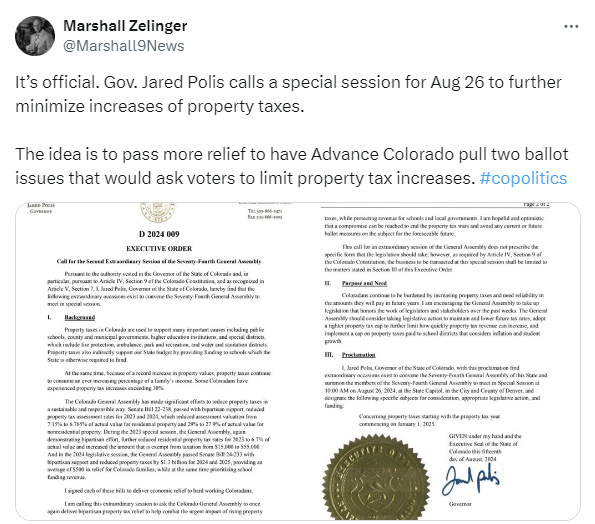 The special session will begin on Aug. 26 and is expected to last three days. Lawmakers have a narrow window to act, as Sep. 6 is the last day to withdraw an initiative before ballots go to the printer. Polis said he won’t sign any deal unless the measures are pulled.