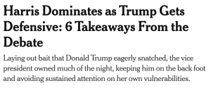 ► Following the debate, pop superstar Taylor Swift poured salt in Trump’s wounds by publicly endorsing Kamala Harris for President. As CNN reports: