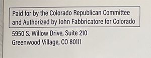 Here’s that mail piece promoting the no-hope candidacy of Republican John Fabbricatore in CO-06. Fabbricatore is NOT going to unseat incumbent Democratic Congressman Jason Crow, but he’s (sorta) making an effort: