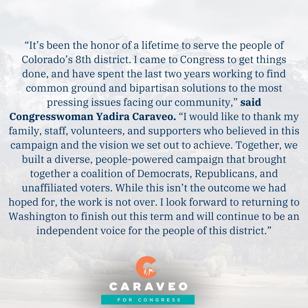 SUNDAY UPDATE: With the count failing to close a persistent gap of around 2,500 votes, incumbent Democratic Rep. Yadira Caraveo concedes the race to Republican challenger Gabe Evans: