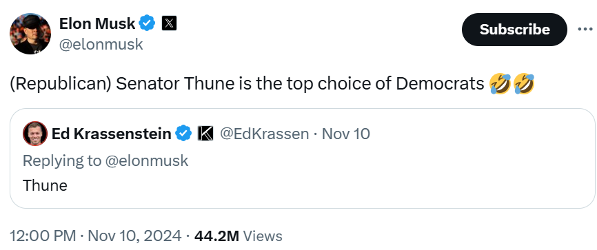 That’s why so many of the MAGA stakeholders with the ear of the incoming President made it clear that they did not want Thune for the job: