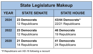 Democrats began the 2024 election cycle with a 23-12 majority in the State Senate. They ended the cycle with…a 23-12 majority in the State Senate.