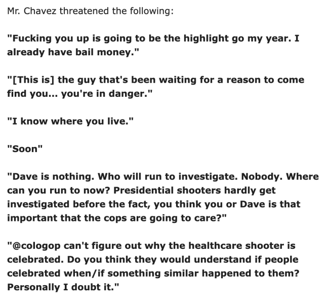 The threats from this Anthony Chavez person are certainly concerning. Full stop.