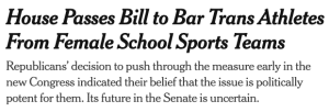 As The Washington Post explains, House Republicans are planting a flag that banning transgender athletes from participating in sports ranks as one of their #1 issues: