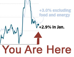 …Price increases were “strong” almost across the board in January, in categories like groceries, gasoline, prescription drugs, vehicle insurance and repair, airline tickets and hotel room rates, Zandi said. The only major category with a decline was apparel, he said.