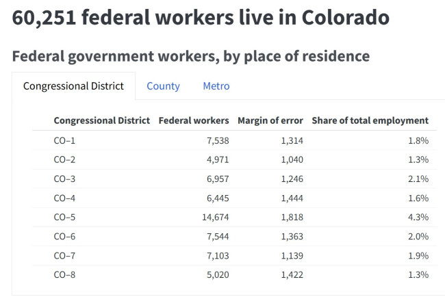 With no reason to believe that the DOGE culling of federal workers will end anytime soon, the economic and political damage from these job losses are only going to get worse. Here in Colorado, home to over 60,000 federal employees, every congressional district is set to feel the pain: