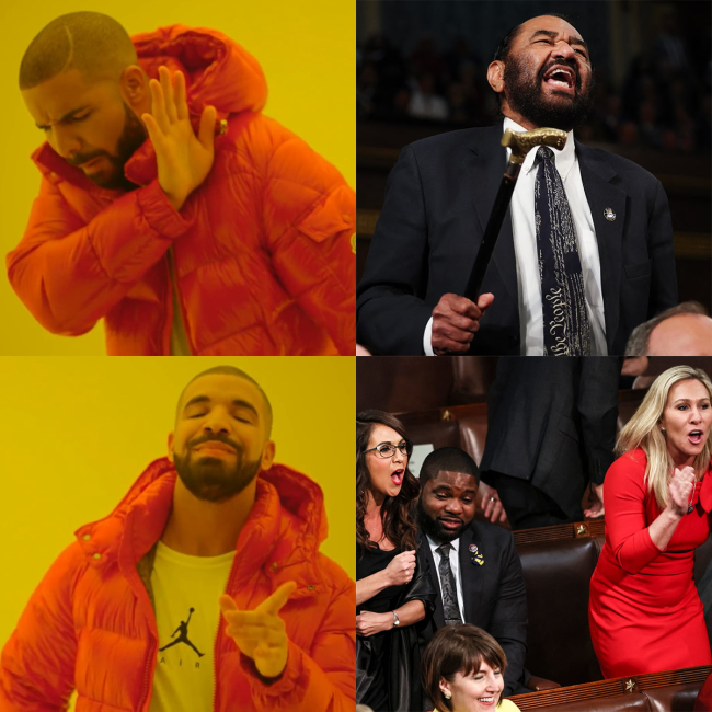 As the Houston Chronicle’s Michael Garcia reports, Colorado’s carpetbagging controversy-seeking missile Rep. Lauren Boebert couldn’t resist taking one more uniquely hypocritical little swipe at Rep. Al Green, who was censured last week after interrupting President Donald Trump’s address to a joint session of Congress–much the same way Boebert herself heckled and hollered all the way through Joe Biden’s State of the Union in 2022 but was never punished for.