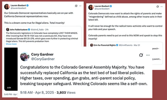Yet somehow Colorado Republicans seem to think national election results override the blue wave that has overtaken our state in the last decade. Prominent current and former GOP elected officials — including Rep. Lauren Boebert and former Senator Cory Gardner — are clearly turning their fire on the state legislature, despite the fact that Republican blockheads at the State Capitol are completely incapable of accomplishing anything relevant.