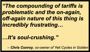 As Jason Blevins reports for The Colorado Sun, many small businesses operating in the outdoor recreation sector are laying off employees and shuttering operations altogether because of a different Trump policy: The on again, off again Tariff Wars.