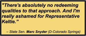 “There’s absolutely no redeeming qualities to that approach. And I’m really ashamed for Representative Keltie.”