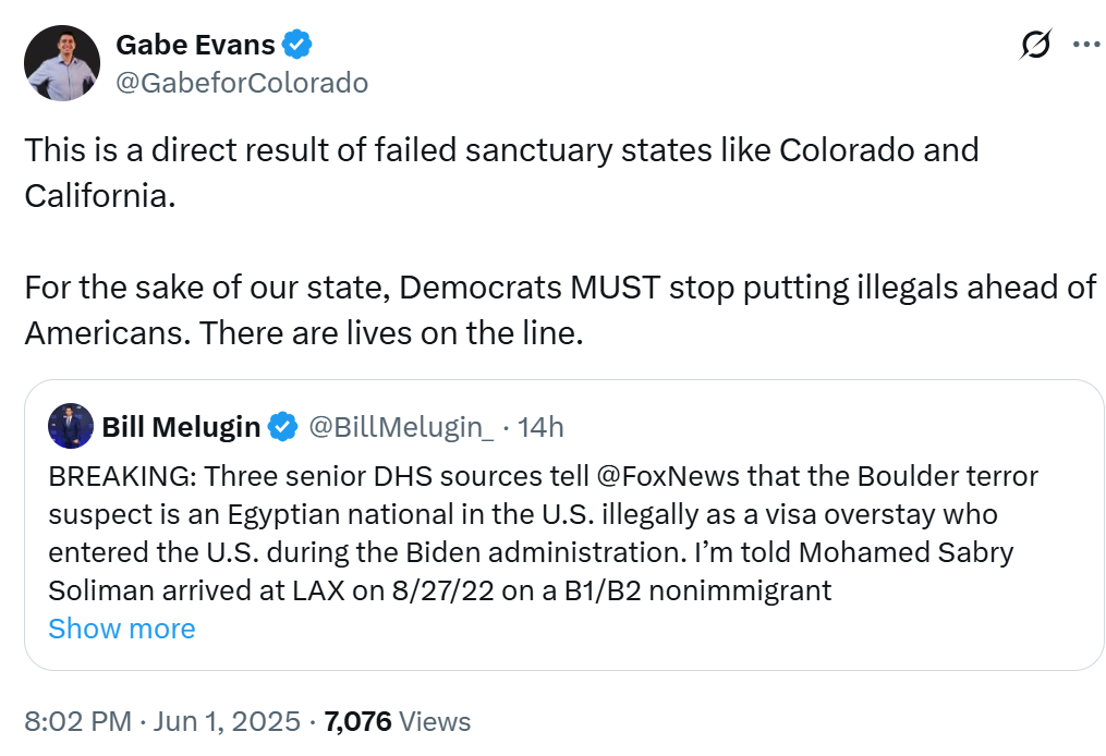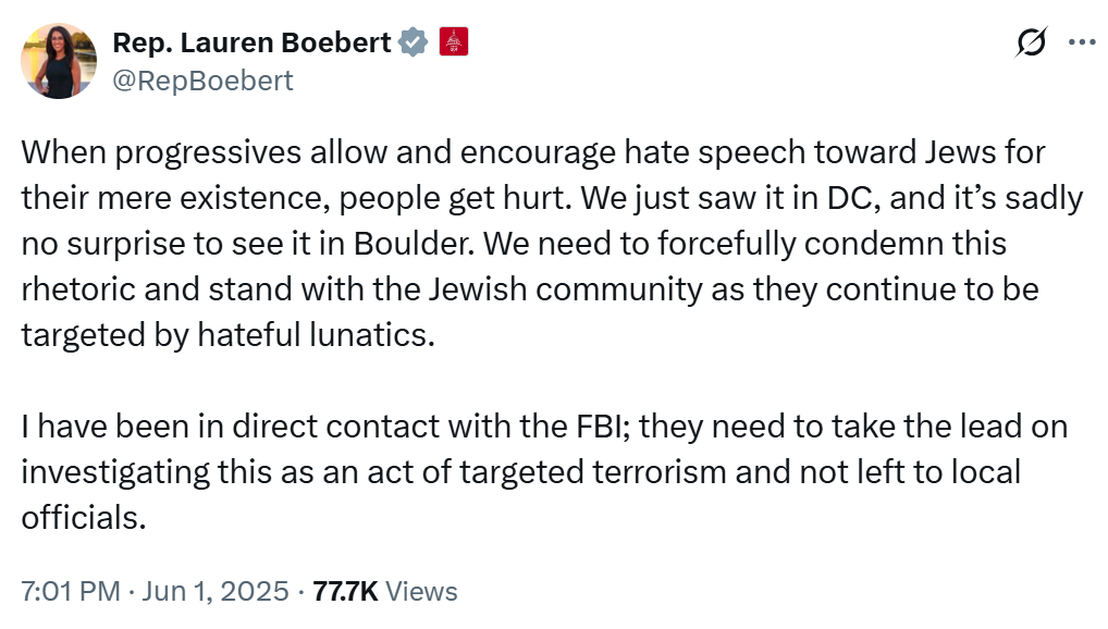 All we can say is that neither of these initial reactions from Rep. Lauren Boebert and Rep. Gabe Evans fit the facts as they’ve been reported so far. As the investigation into this attack continues, it’s likely that details will emerge to further complicate easy political pigeon-holing. Talking heads on all sides should be careful to avoid statements that age poorly, but based on experience, depressingly few especially on the right are likely to take that advice.