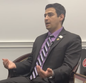 EVANS: So, you know my story, right? My abuelo, Cuauhtemoc Chavez, came to the United States. He got his citizenship with service in World War Two. [He received] two purple hearts fighting with Patton’s Third Army. So for me, growing up, it was always taught to me that you want to come to the United States, you want to work hard, you want to raise your family here, you want to follow the laws, you want to pay the taxes.