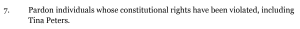 The potential future governor’s list also includes agreeing to pardon Tina Peters, the former Mesa County clerk serving a nine-year prison sentence for her role in breaching secure election equipment. [Pols emphasis]