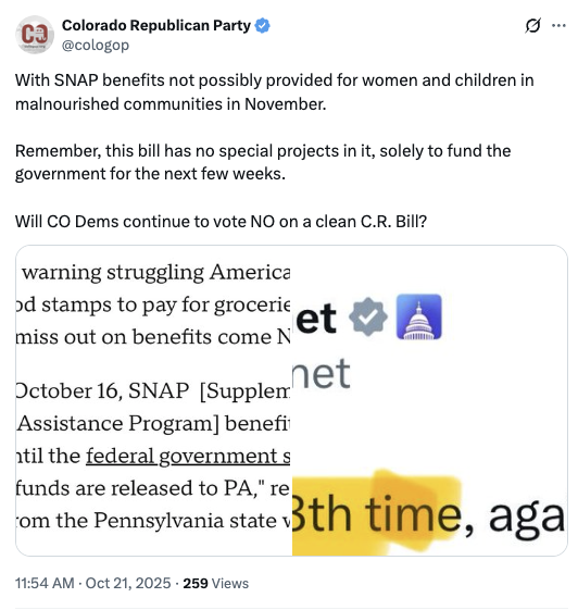 “Starting October 16, SNAP [Supplemental Nutrition Assistance Program] benefits will not be paid until the federal government shutdown ends and funds are released to PA,” reads a notice from the Pennsylvania state website.