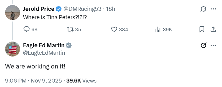 But for undoing Ellis’ felony conviction or ex-CU conservative affirmative action scholar John Eastman’s disbarment, a Trump pardon is about as useful as…well, a fake elector. Where does that leave the last remaining incarcerated criminal from the 2020 coup plot, Colorado’s Tina Peters?