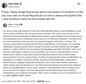 After last week’s unsuccessful last-minute efforts to sway Republicans such as Rep. Lauren Boebert, the writing was on the wall for today’s House vote. On Sunday, Trump did his version of waving a white flag by announcing that he WANTED the House to vote on releasing the files.