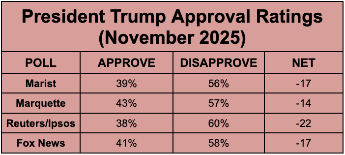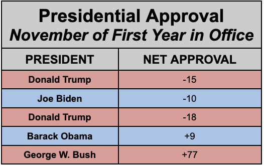 For context, the only President in recent history with a worse net approval rating in November of their first year in office was…Donald Trump in 2017.
