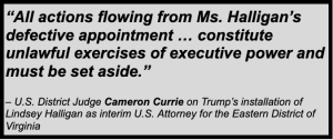The Interim U.S. Attorney for the Eastern District of Virginia, Halligan has made a fool of herself, her office and the Department of Justice. In her very first case, the one Trump installed her to prosecute, she has bungled the proceedings so badly that she may lose her law license years faster than it took Ellis.