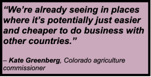 State agencies interviewed farmers and ranchers as well as businesses across several sectors: aerospace, construction, technology, retail, bioscience, energy and manufacturing. The report was coordinated among the Colorado Office of Economic Development and International Trade, or OEDIT; the Colorado Department of Agriculture; and the Colorado Department of Labor and Employment.