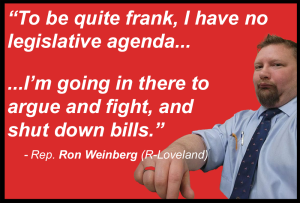Think about that for a moment. Weinberg is essentially saying, with pride, that he plans to do absolutely nothing for his Loveland constituents and will instead focus his time on trying to muck up everything else.
