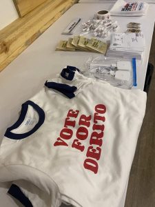 The campaign seems to have a sense of humor. On the merchandise table, amid traditional t-shirts and Chapstick, were a handful of “Self Adhesive Fake Mustaches”, playing off Derito’s prominent stache.
