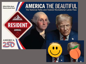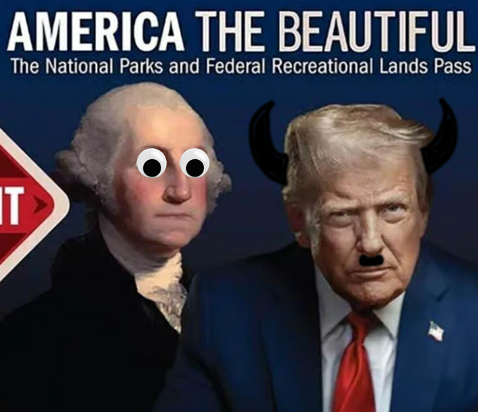 Americans have been placing stickers over President Trump’s face on the new annual National Parks pass. This makes the Dear Leader very sad.