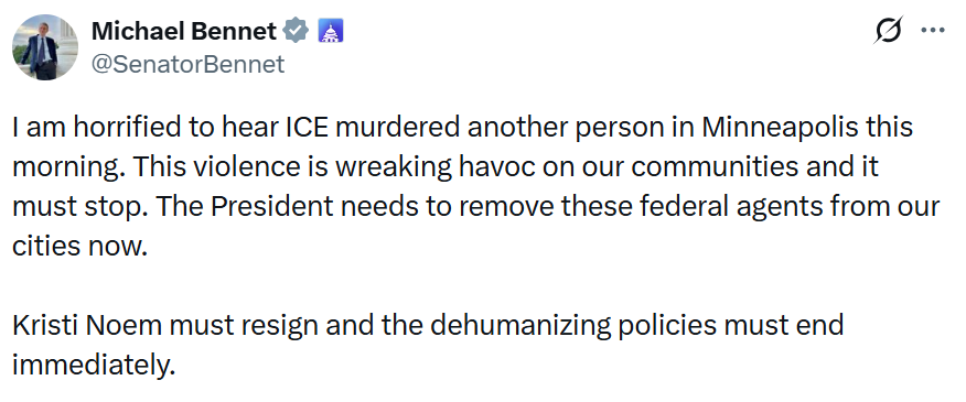 Pretti’s killing and the response from the Trump administration has prompted renewed calls for Department of Homeland Security Secretary Kristi Noem to either resign or be impeached, including from Colorado Sen. Michael Bennet: