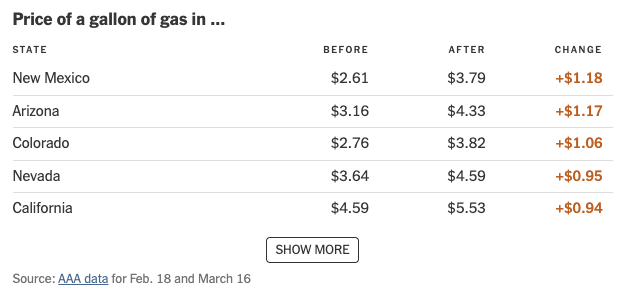 …It’s the second-largest four-week increase in at least 30 years — bigger than the one at the start of the war in Ukraine in 2022, or the ones associated with the post-recession surge of 2009 and the OPEC production cuts in 1999.