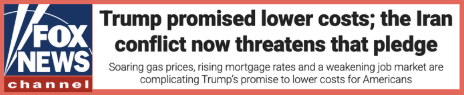 This is a political catastrophe for Republicans, who have resorted to attempting the absurd narrative that it’s actually a good thing that gas prices are rising so quickly. The economy was bad enough with inflation still not under control, high grocery prices, and scary employment numbers leading fears of a recession. Trump has compounded this problem with policies entirely of his own making, from his disastrous tariffs to the Iran War.