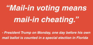 President Donald Trump, who is in the midst of pressuring senators to curb the use of mail-in voting, voted by mail ballot in Tuesday’s special election in Palm Beach County, Florida. [Pols emphasis]
