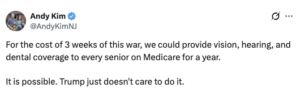 Mr. “America First” wants to gut domestic policy programs in order to pay for military conflicts that nobody outside of Israel wanted and that Americans overwhelmingly oppose.