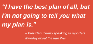 …At an earlier White House appearance, Mr. Trump added to the conflicting signals that have characterized the conflict, now in its second month, by saying that he wanted the United States to take Iran’s oil and profit from it. That would imply a long-term and risky U.S. presence in the region, but “unfortunately the American people would like to see us come home.”