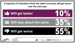 A clear majority of likely voters — 55% — predicted the economy would worsen over the next year, compared to 46% who answered the same way in a similar survey also conducted for the Colorado Polling Institute in November.