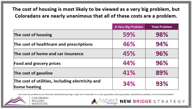 She noted that voters have a diffuse top set of issues they want the state government to address. Cost of living ranked highest at 9%.