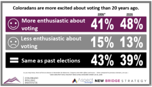 The swings reflect more negative attitudes from Democratic and unaffiliated voters, said Kevin Ingham of Aspect Strategic, one of the polling firms that conducted the survey of 613 likely 2026 Colorado voters.