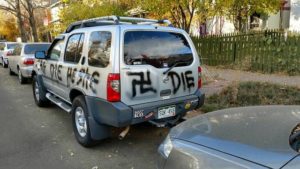 The spike in hate crimes in Aurora since the November elections is not unique; nationally a dramatic increase in such activity has occurred since Donald Trump won the presidency. Not long after the election, Trump made a two-word statement in response to questions distancing himself from these crimes, telling those responsible to “stop it.”